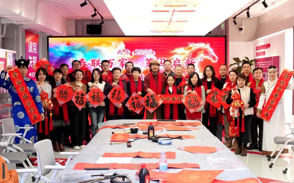 2月9日,民进鄂尔多斯市支部与中共北京市东城区委统战部、民进东城区委会、东城区建国门街道、东城开明画院、内蒙古开明画院、北京中投汇通科技有限公司共同举办丙午(2026)民进全国“春联万家·策马启新”活动。